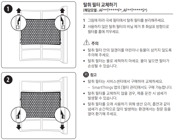 - 탈취 필터 : 2~3개월 (탈취필터는 교체주기 입니다. 청소하면 안됩니다)