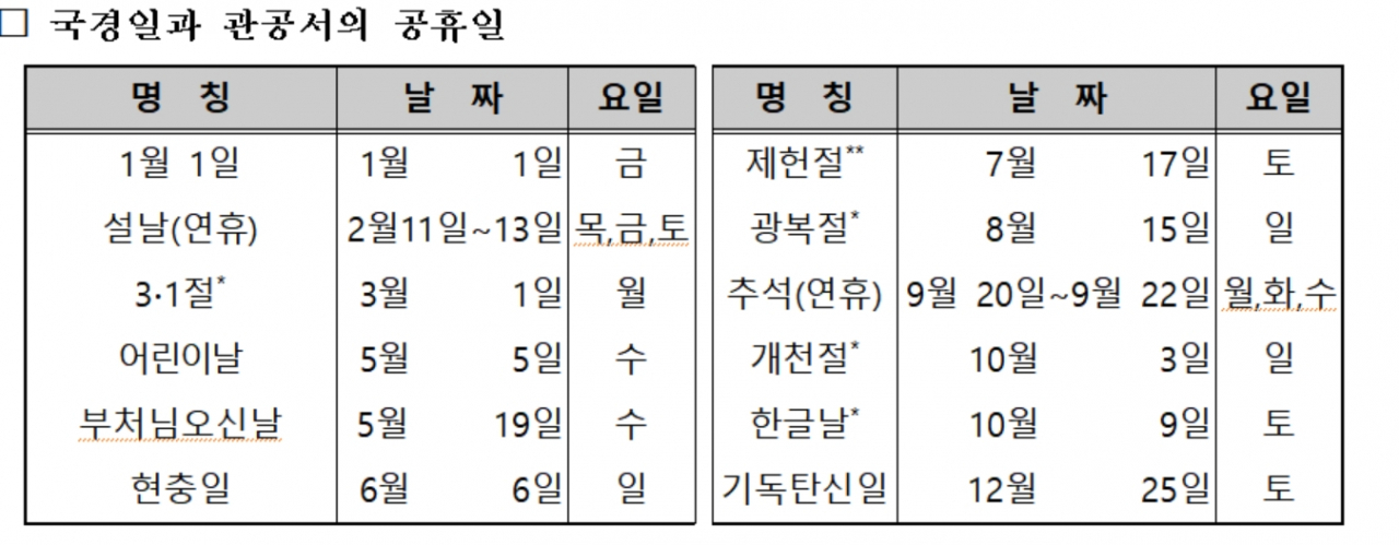 2021년 공휴일은 올해보다 3일 줄어든 총 64일 이라고 합니다.