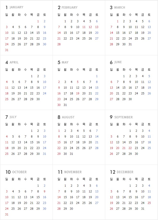 전체 달력을 통해서 2021년 공휴일 확인해보겠습니다.