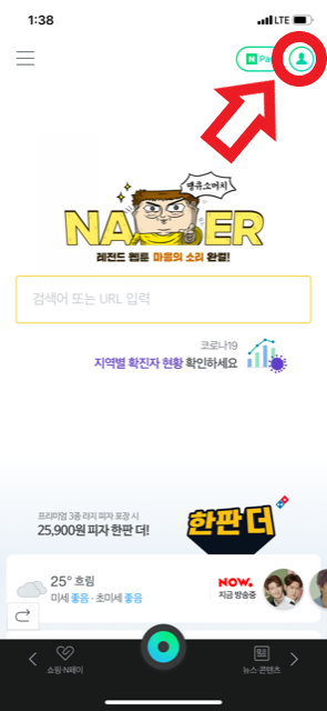 네이버 QR코드 만들기 하려면, 이 화면에서 오른쪽 위에 사람모양을 눌러주시기 바랍니다.