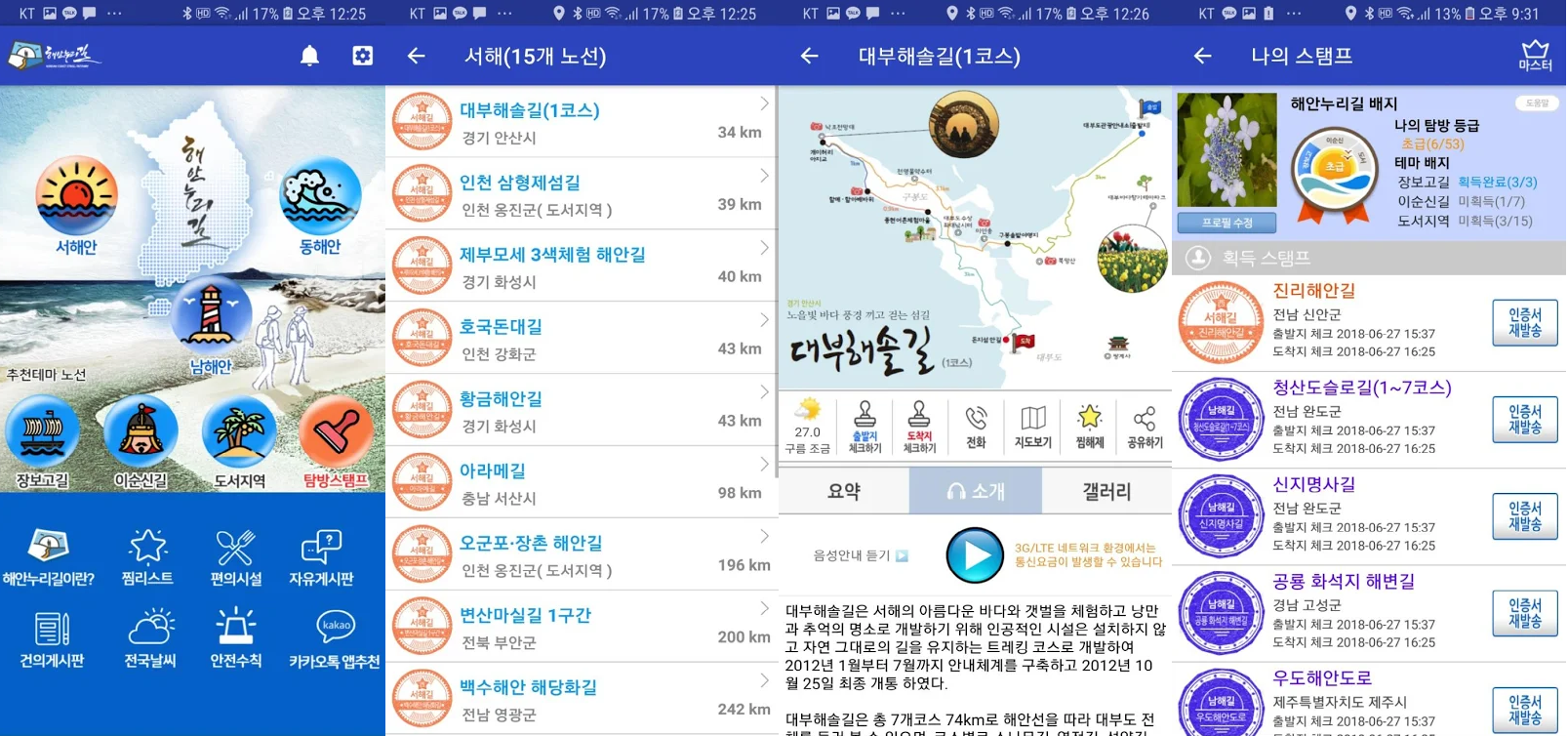 한국해양재단에서 제작한 앱으로 국내 여행 중 해양 문화에 관련된 것만 집중적으로 소개하는 앱입니다. 바다를 좋아하고, 걷기를 좋아하는 분들에게 안성맞춤인 앱으로 53개의 해안누리길을 소개하고 있습니다. 각 자지자체에서 추천을 받고 검증된 길들로만 엄선했다고 하니 많은사람들은 모르는 꿀 장소들이 아닐까 싶습니다. 구글 플레이 사이트 또는 앱 스토어에서 다운이 가능합니다.