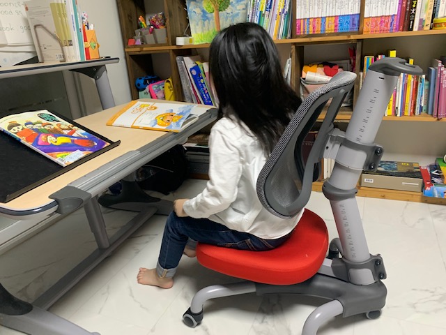 책상에 앉는 자세를 어렸을때부터 바르게 잡아주는게 좋다고 생각합니다.