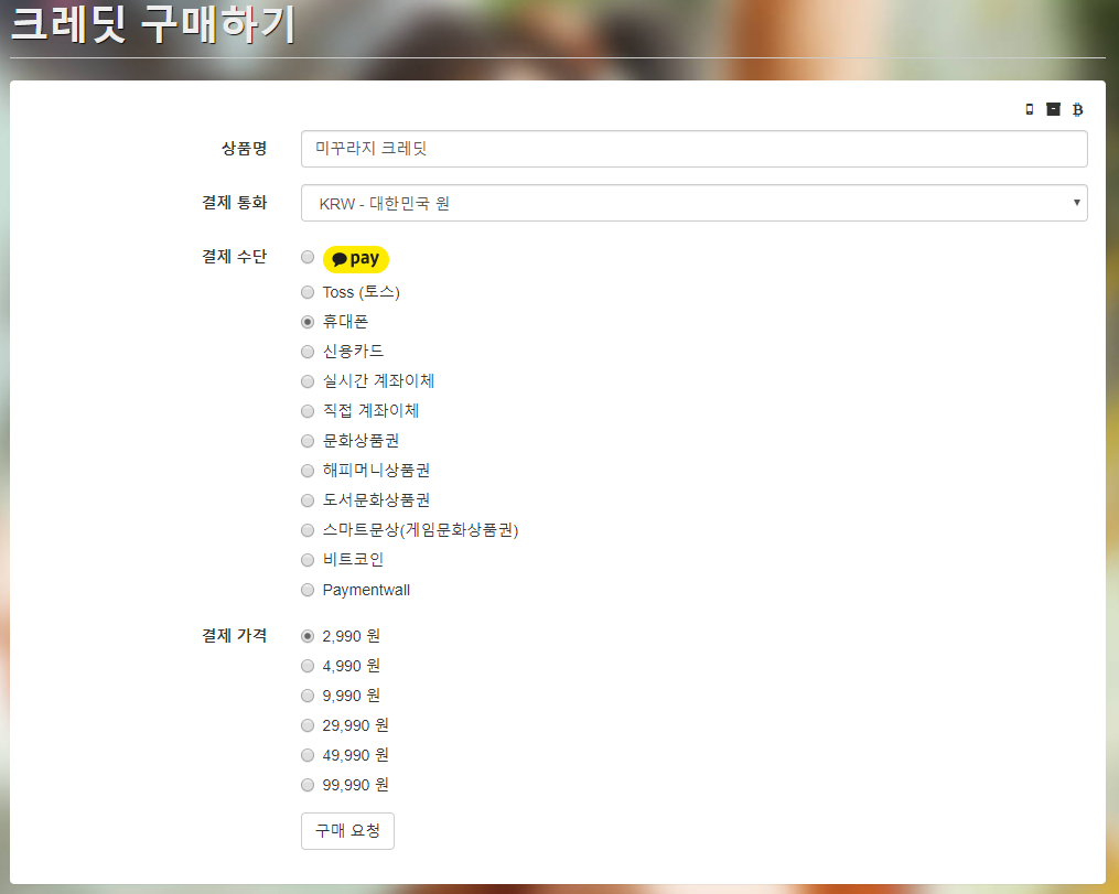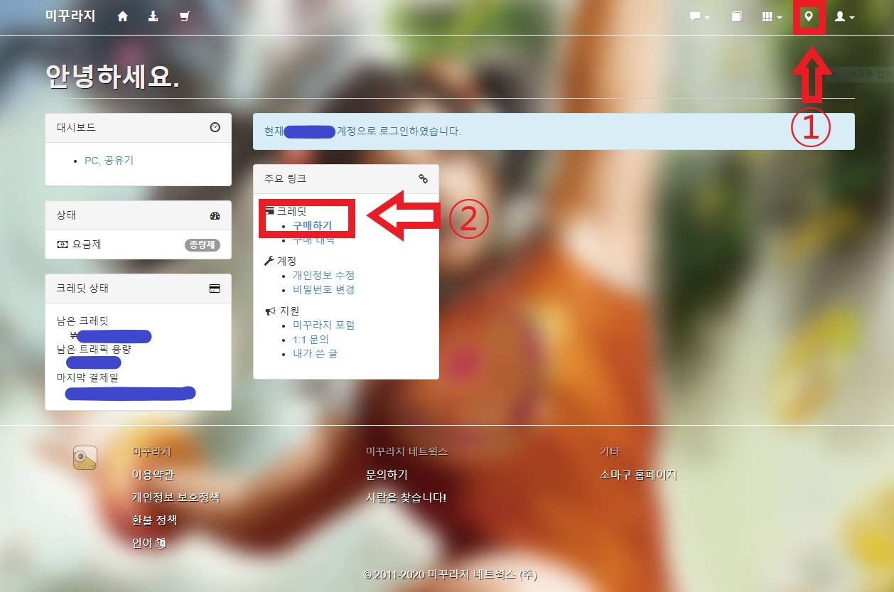 - 런처를 틀지 않고 그냥 일반 홈페이지에서 로그인해서 크레딧 구매할 경우