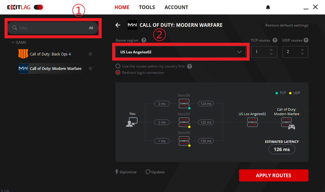 서버를 선택했으면 오른쪽 맨 밑에 빨간색 박스 'APPLY ROUTES'를 눌러줍니다.