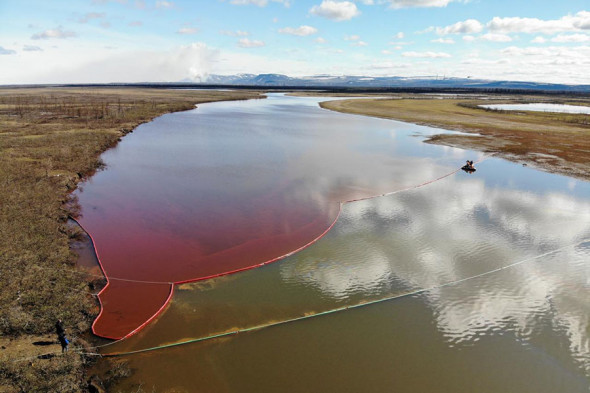 유출 사고는 지난달 5월 29일 세계 최대의 니켈·팔라듐 생산 업체인 '노릴스크 니켈'의 자회사가 운영하는 한 발전소의 연료 탱크가 파손되면서 발생했습니다. 정확히는 지반에 세워둔 기둥이 무너지면서 탱크에 있는 디젤이 유출되었는데요, 이렇게 유출된 기름은 인근 암바르나야강을 붉게 물들였습니다.